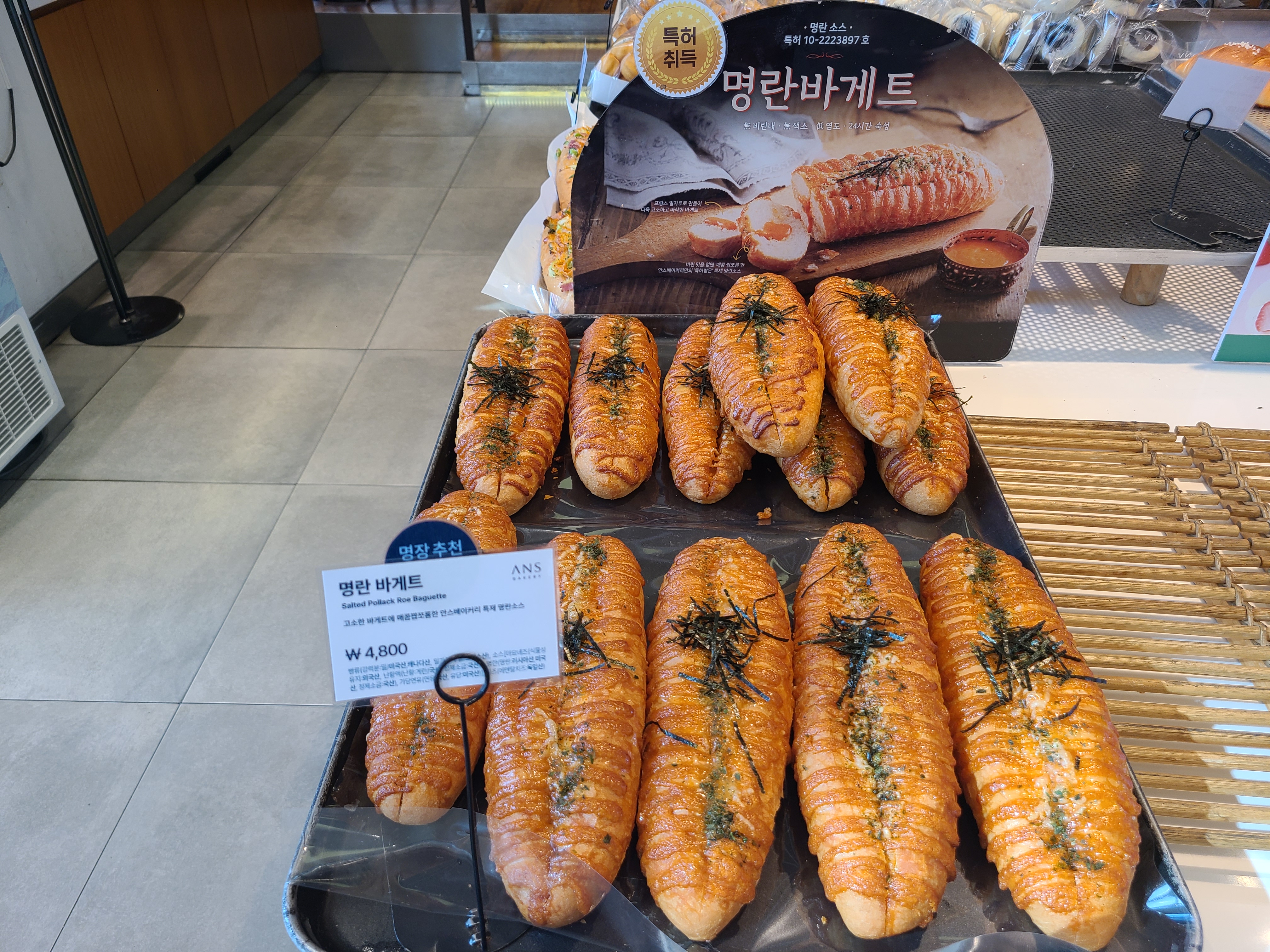 명란바게트입니다. 저는 대전 성심당에서만 나오는 것으로 알고 있었는데 아닌가 보네요. 모두 열심히 다양한 빵을 만들고 계발하는 것 같네요. 다양한 빵을 접해볼 수 있어서 우리 소비자들에게는 좋은 일이죠.. 특허취득이라고 하였는데.. 특허 등록이겠죠.. ^^