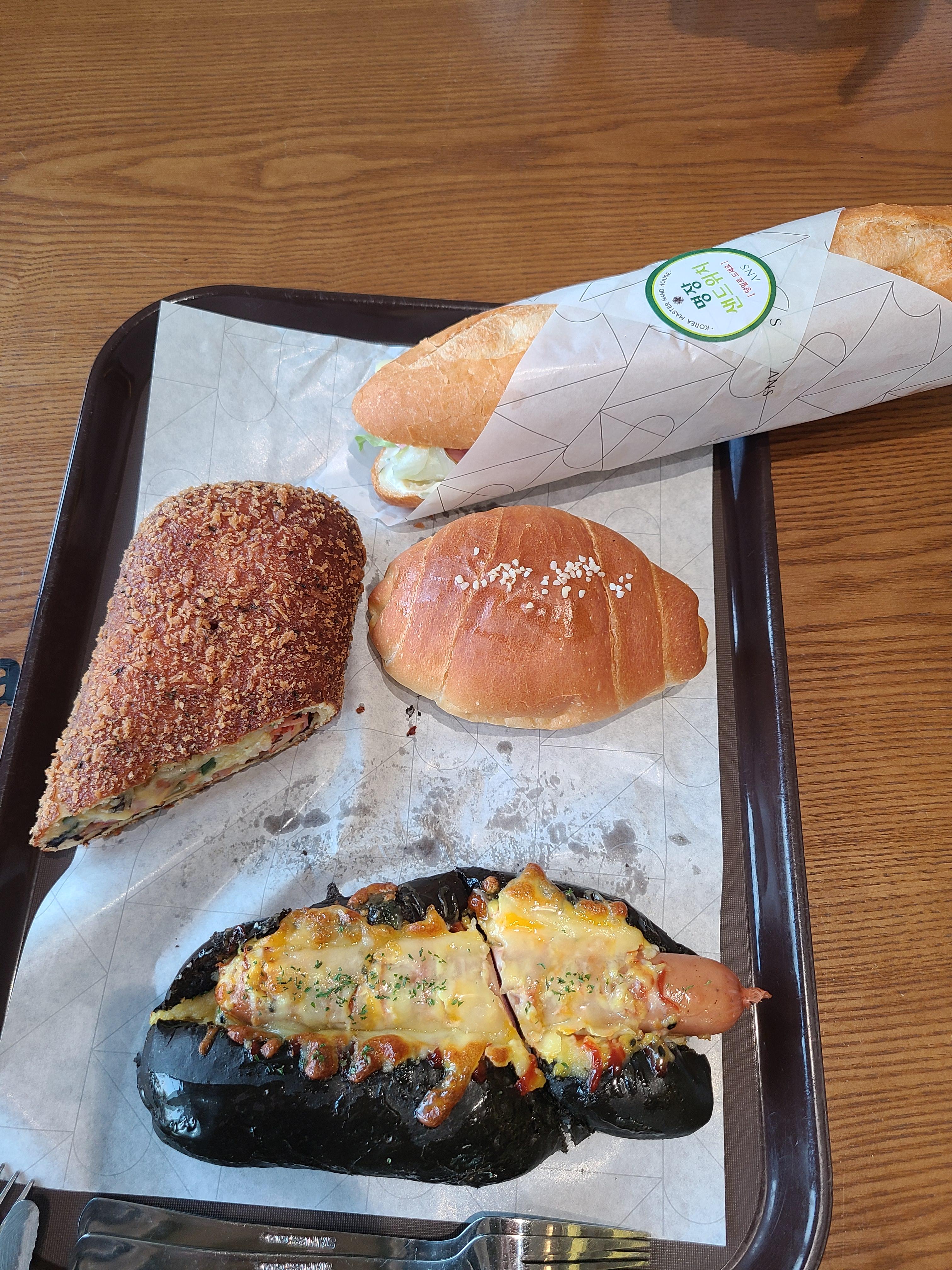 제가 아침에 먹은 빵입니다. 저 혼자 먹은 것이 아닌 3명이 먹었습니다. 속직하게 소금빵은 다른 곳과 별 차이가 없었습니다. 그러나 '명장 샌드위치'는 아주 맛이 있었습니다. 바케트라서 약간 거친(?) 점은 있었지만, 내용물도 풍부했습니다.