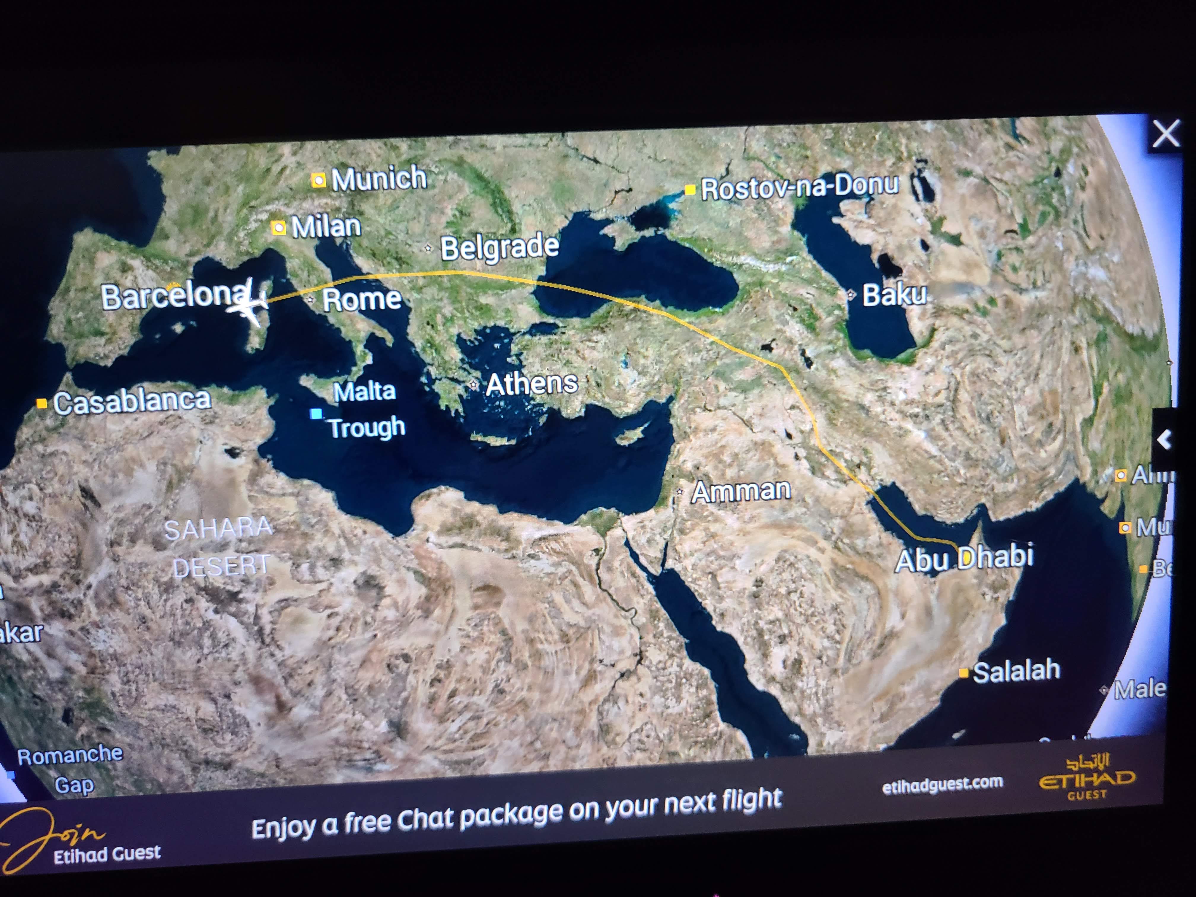 인천공항에서 아부다비 (EY857), 아부다비에서 바르셀로나 (EY49)