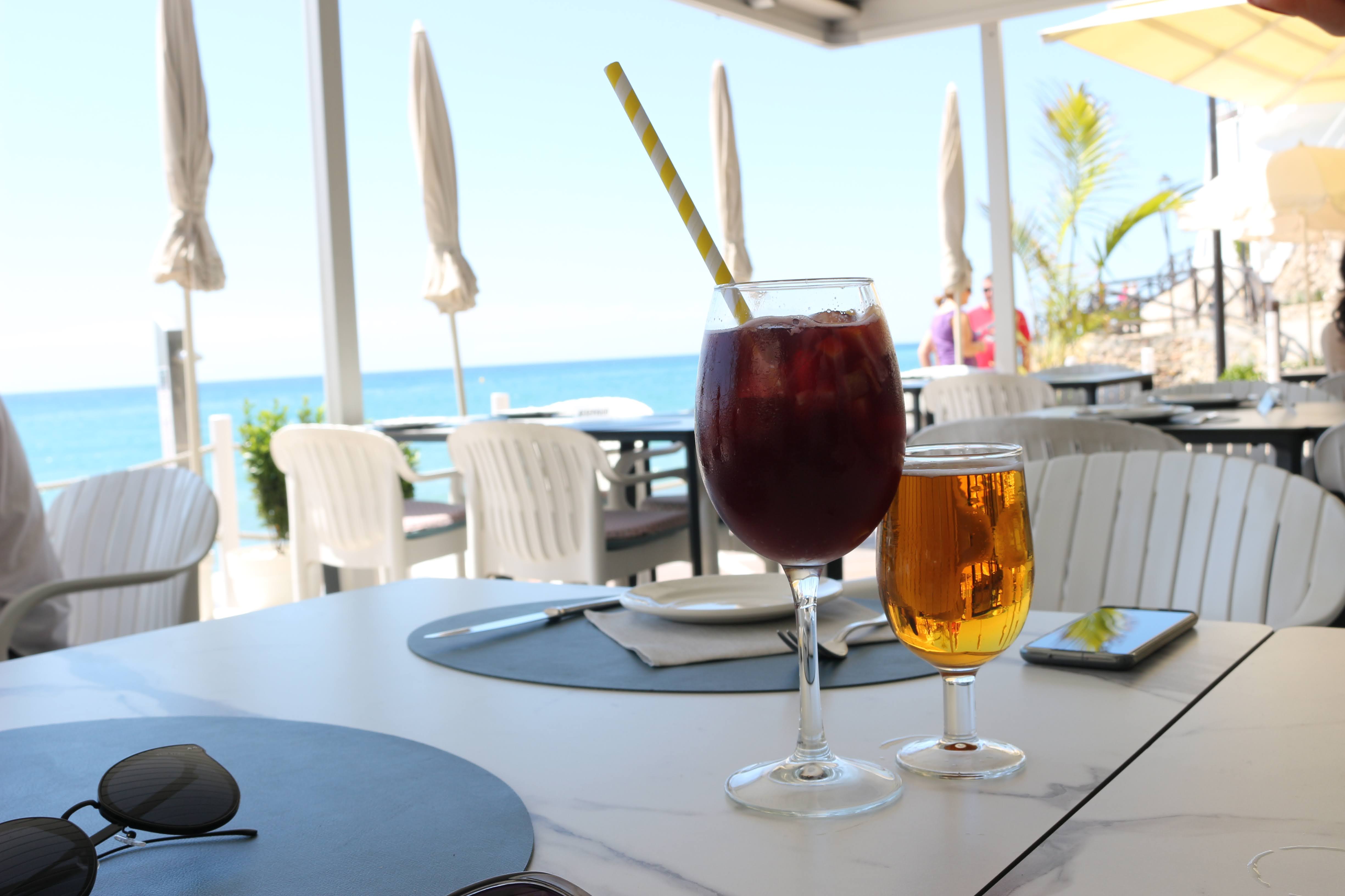 바로 지중해 해변가를 바라보면서 상그라와 맥주 한잔을 하였습니다. 해변가에 여행지이기에 약간 비싼 감은 있었지만, 이곳에서만은 나를 위한 사치를 부리고 싶었고요... 또 이런 곳에서 점심 한 끼는 행복이라고 생각을 했습니다.