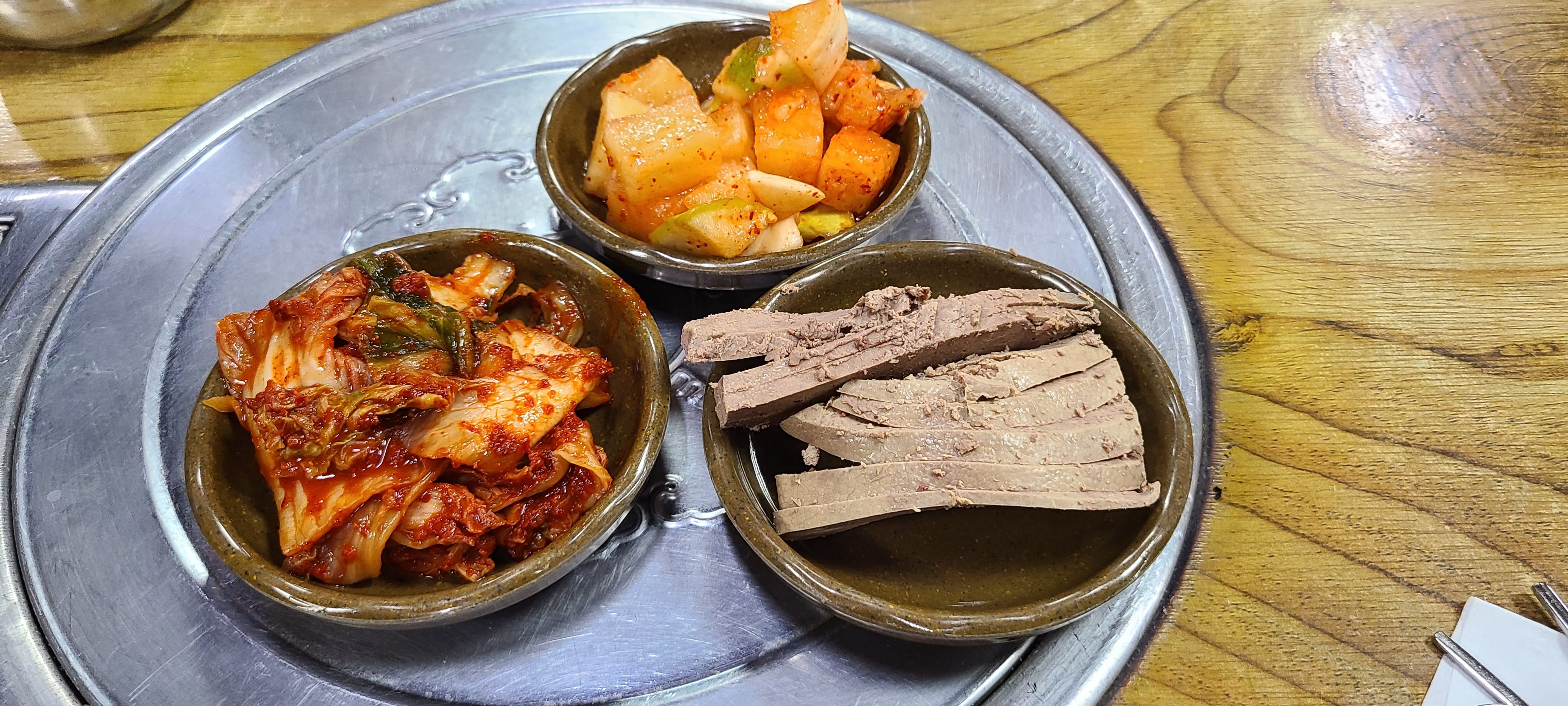 간은 약간 차가운 느낌이 들었습니다. 따뜻한 국밥 국물에 약간 적셔 드시면 좋아요.