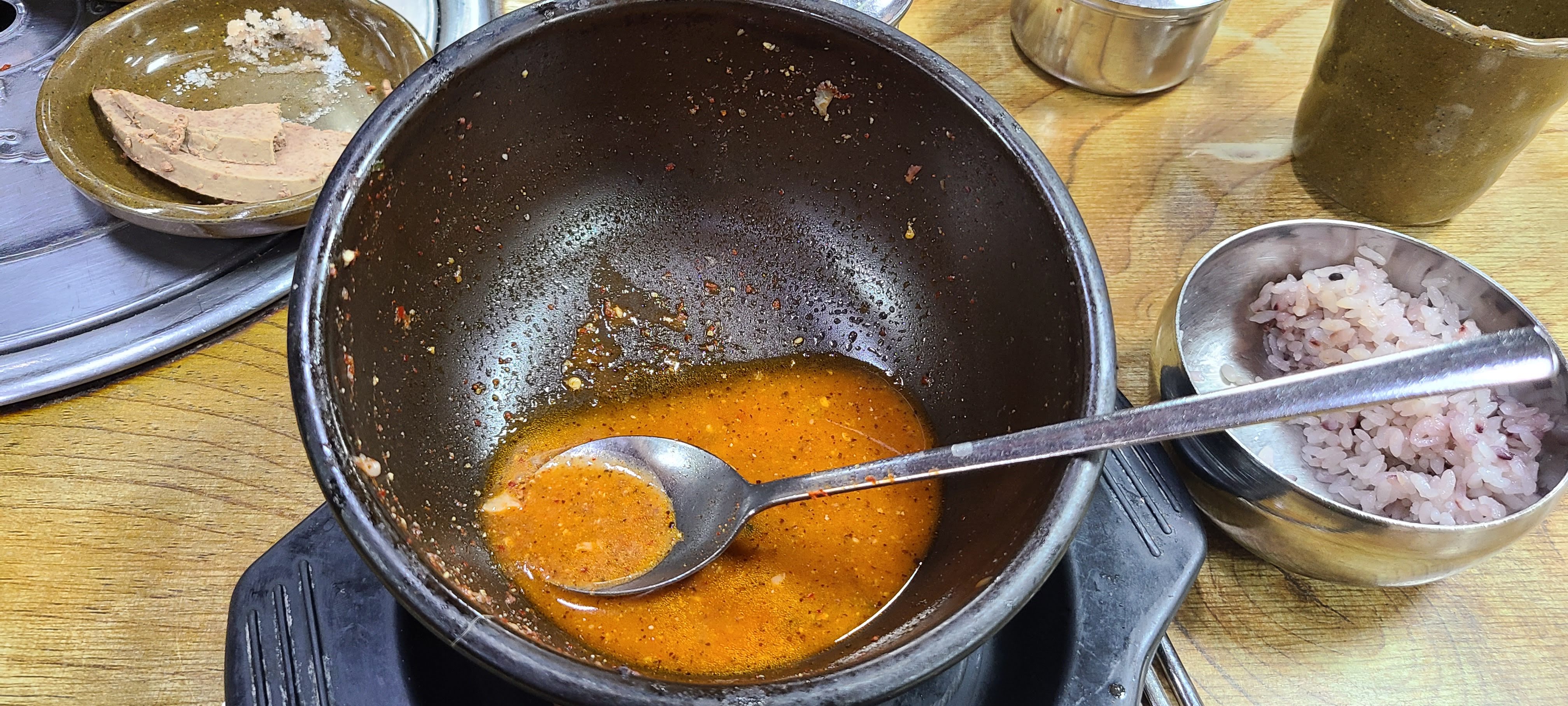 그리고 간이 있었습니다. 간도 먹을 만큼 마음껏 가져다 먹어도 됩니다. 대부분 간을 주지 않거나 특별한 곳에서 간을 주는 경우가 있었는데, 간을 이렇게 놓은 곳은 처음이었어요. 저는 간을 좋아해서요..