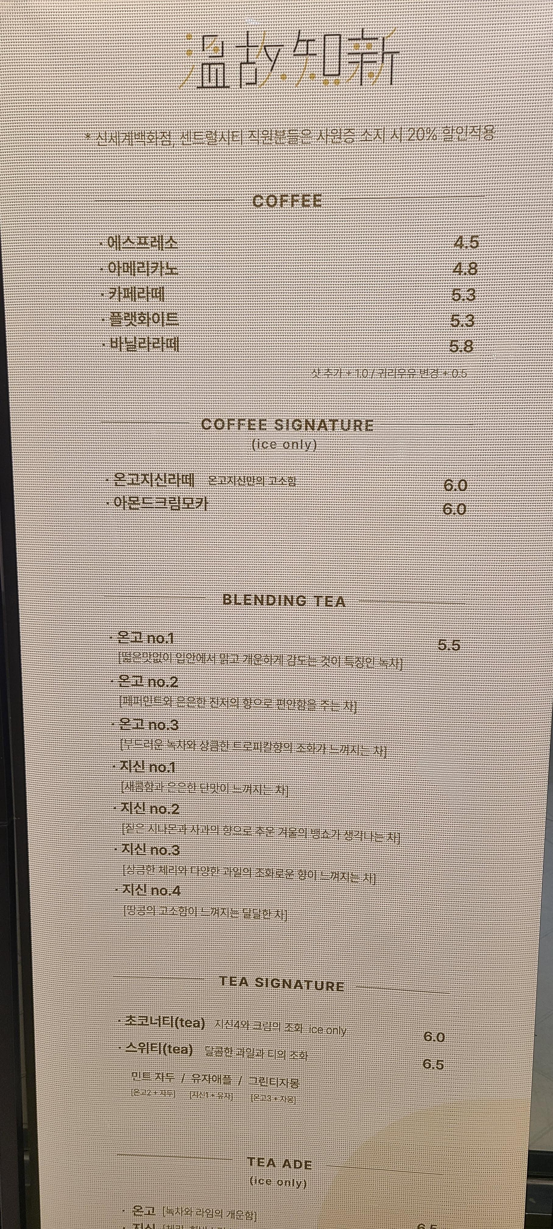 센트럴시티 2층 (정확히는 1.5층) 식당이 있는 층에 조그맣게 있는 온고지신입니다.