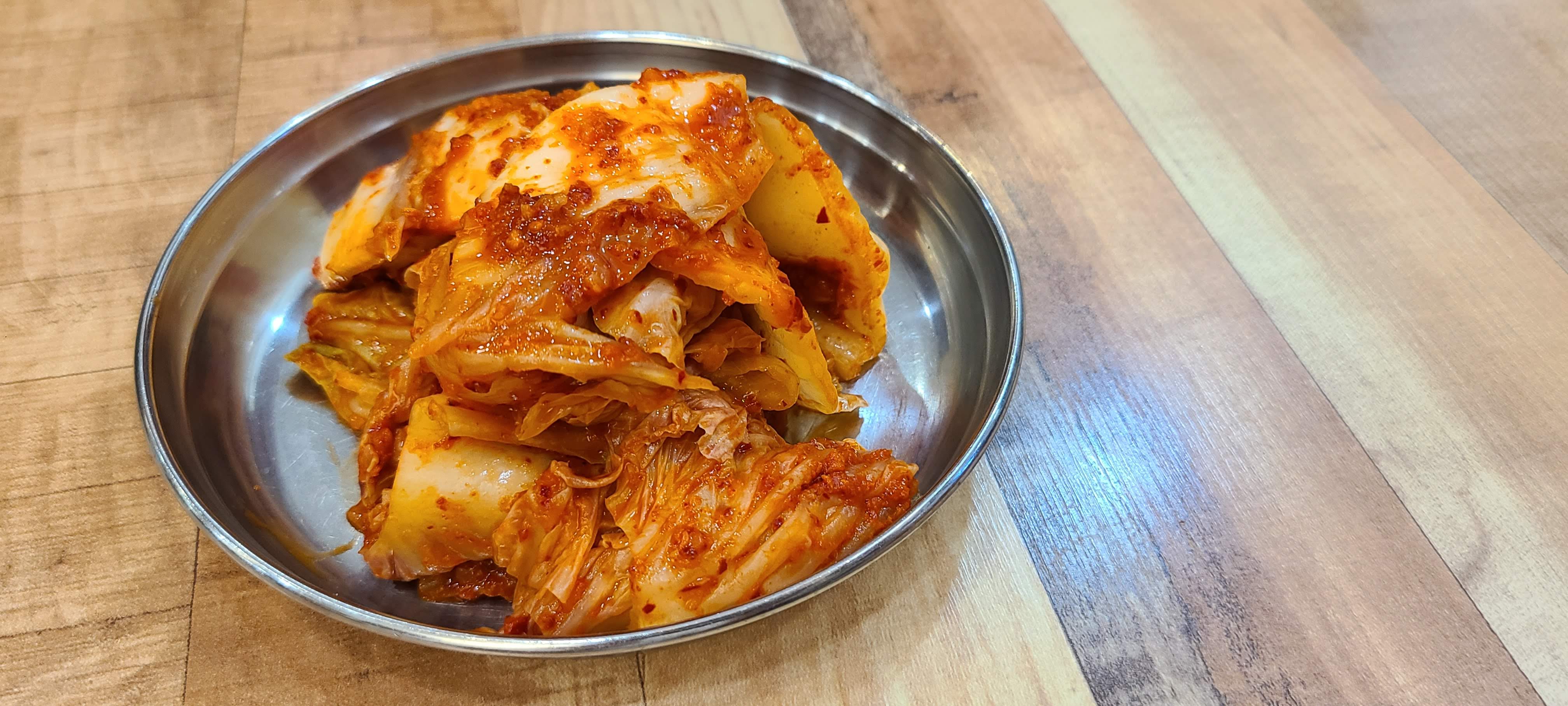 칼국수 김치라고 보시면 될 것 같아요. 단맛과 약간 매운맛이 있어 칼국수와 함께하기에는 좋은 김치입니다.