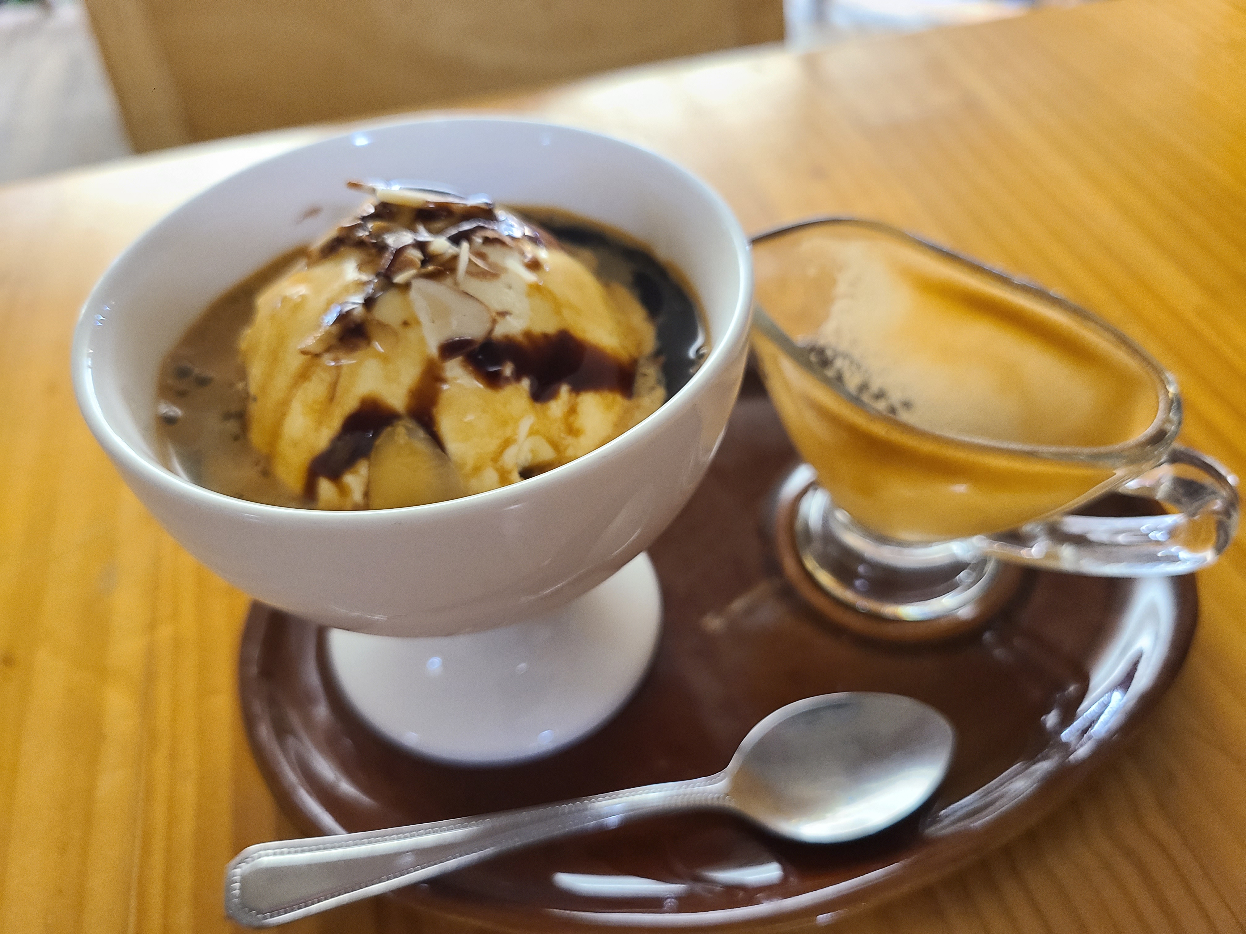 자주 먹는 곳입니다. 디에떼 입니다. 집 근처에 있어서 이벤트(눈이거나, 비가 오거나, 심심하거나 ... )가 있으면 늘 와서 먹습니다. 아보카토 전용잔에 주는 것 같아요. 커피는 에스프레소 중에서 진합니다. 아이스크림도 젤라또와 같은 아주 좋은 아이스크림은 아니지만 그렇다고 싸구려는 아닌것 같고요. 가격은 5,500 원 입니다. 아보카토 먹으면서 난감함 것중의 하나가 커피를 부울때 커피가 흘리는 것입니다.대부분 아포카토용 컵이 준비되어 있지 않아서 커피를 부어 먹을대 흘려서 난감한 적이 많았습니다.여기에서는 에스프레소 커피를 부을때 흘림없어서 좋습니다. 오늘은 커피가 조금 진하네요. 같은 곳에서 먹는 아보카토가 기분에 따라서 맛이 달라지는 경우가 있는것 같습니다. 전반적으로 이곳 아보카토는 ..